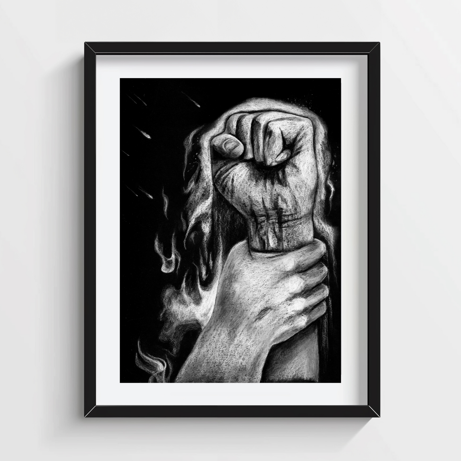 Detailed print of my original charcoal drawing, 'Enabling Power'.