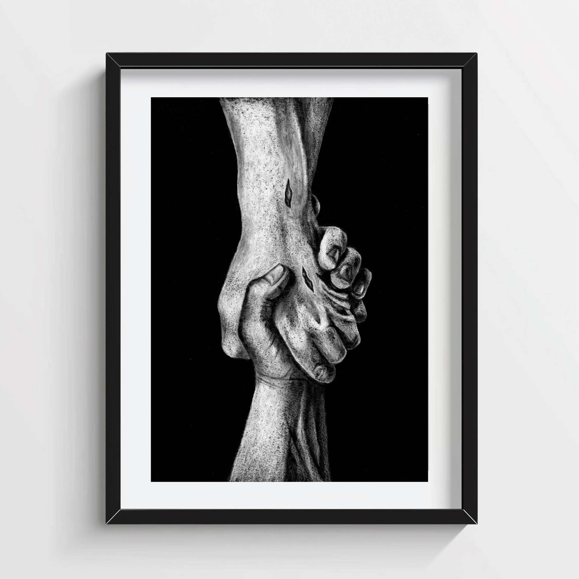 Detailed print of my original charcoal drawing, 'Lifted by Grace'.